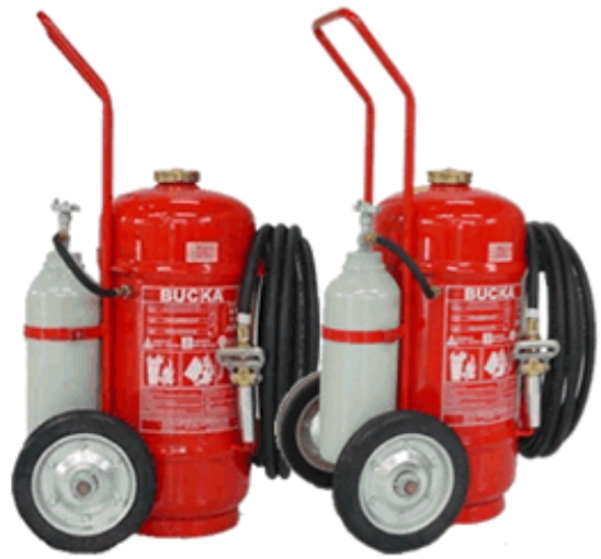 - EXTINTOR PÓ QUÍMICO ABCExtintor de incêndio sobre rodas, com carga de pó químico à base de monosfato de amônio - pó especialmente indicado para fogos ABC. Fabricado de acordo com a ABNT NBR 10721, em chapa de aço carbono (SAE 1010/1020). A sua pressurização é feita através do cilindro de nitrogênio (N2), em aço carbono SAE 1541 com válvula ABL de abertura lenta, em latão forjado com rosca NGT 3/4" e 7/8" e disco de segurança para não romper a pressão. |