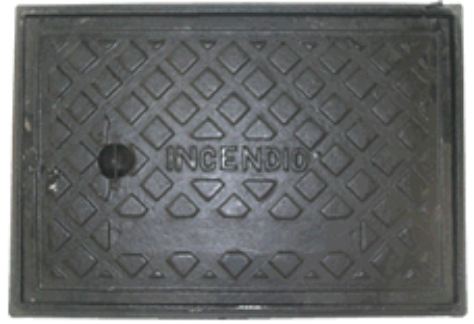 - TAMPA DE FERROTampa de ferro fundido de 60x40 cm com inscrição "INCÊNDIO". Modelo: 60x40 | Código: 5.810.700.000